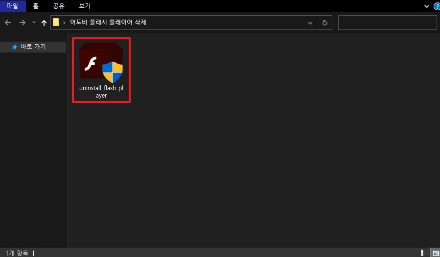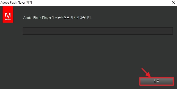실행 중인 모든 어도비 플래시 플레이어를 종료했다면 어도비 플래시 플레이어 제거 파일을 실행합니다. 1분 이내 모든 어도비 플래시 플레이어가 제거됩니다.