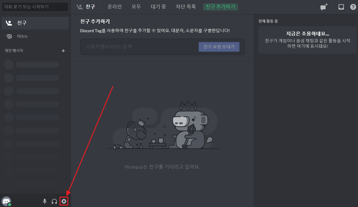 디스코드 로그인 오류가 반복해서 발생하지 않기 위해서는 디스코드 로그인 2단계 인증을 활성화 해야 합니다. 디스코드 2단계 인증은 구글 OTP 앱을 통해 활성화할 수 있습니다. 좌측 상단에 설정을 클릭하고 내 계정 탭으로 들어갑니다.