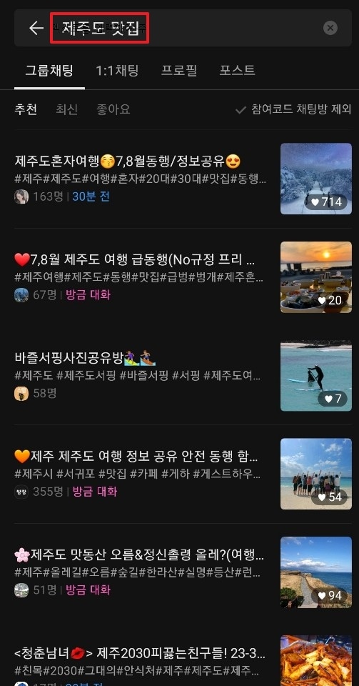 3. 원하는 주제 검색 및 오픈 채팅방 참여